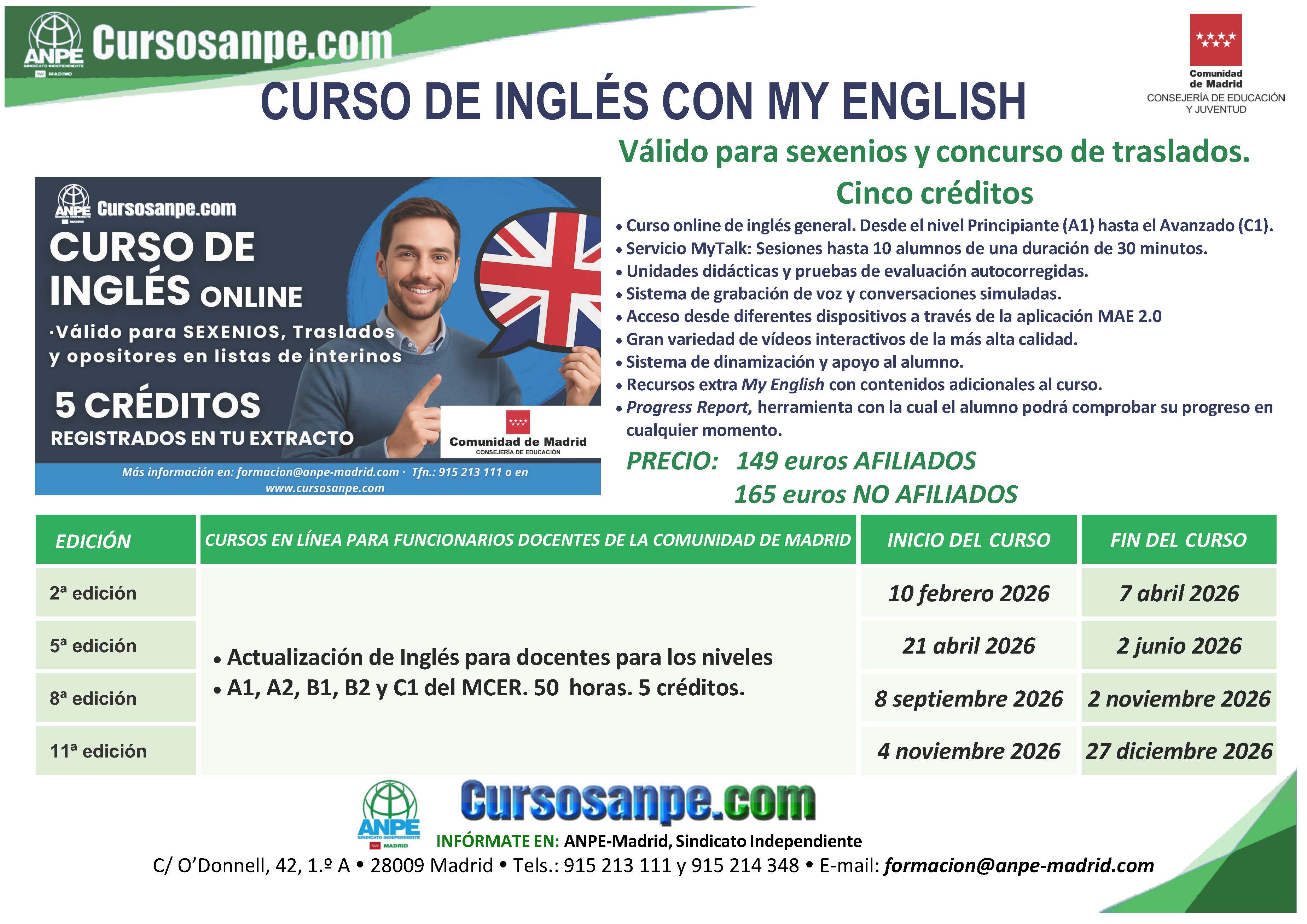 Atenderemos vuestras consultas a través del correo electrónico formacion@anpe-madrid.com, o en los teléfonos 915 213 111 o 915 214 348.